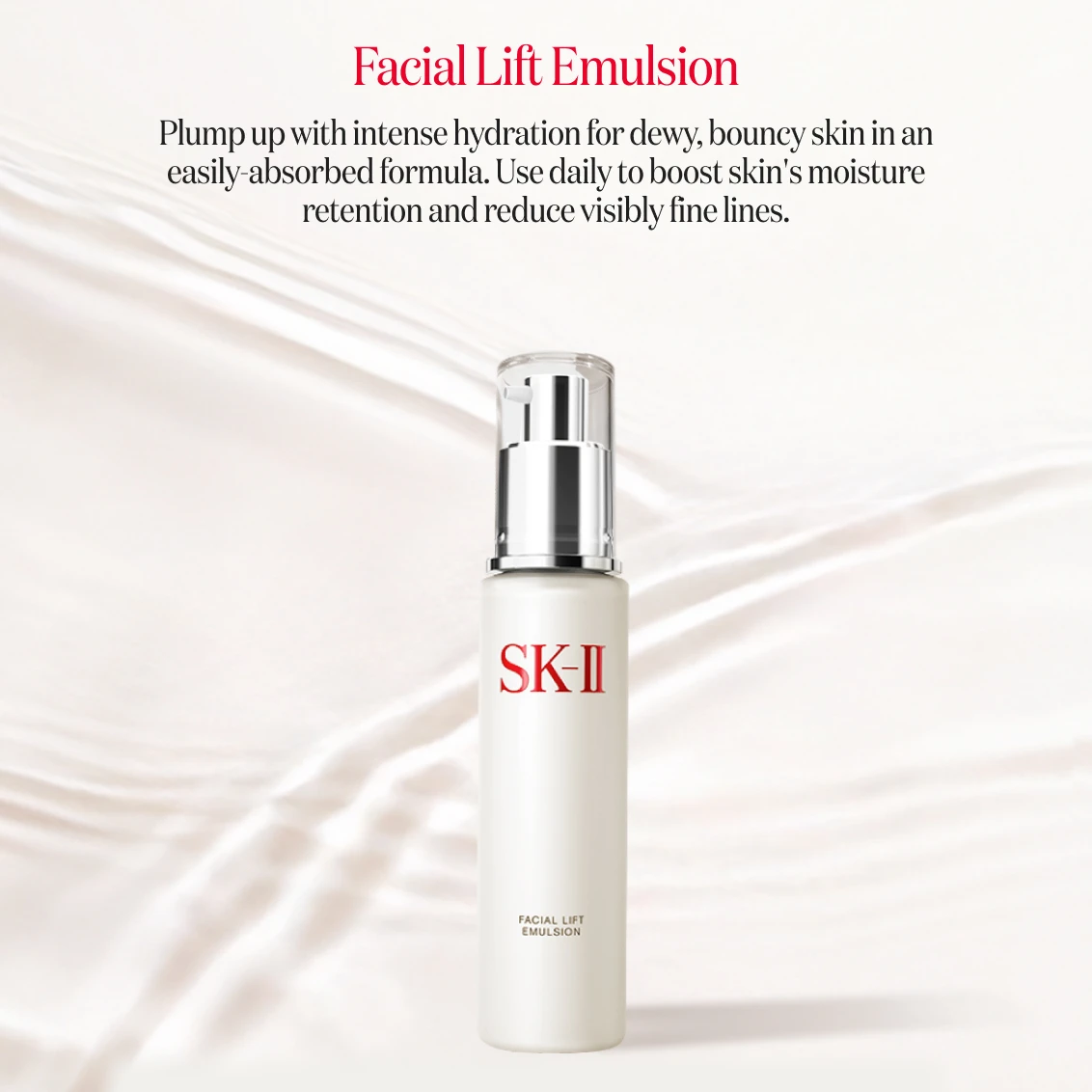 Plump up with intense hydration for dewy, bouncy skin in an easily-absorbed formula. Use daily to boost skin's moisture retention and reduce visibly fine lines.