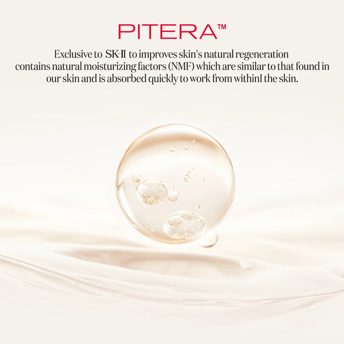 PITERATM : SK-II’s exclusive and naturally derived ingredient crafted from a proprietary fermentation process of a unique yeast strain.