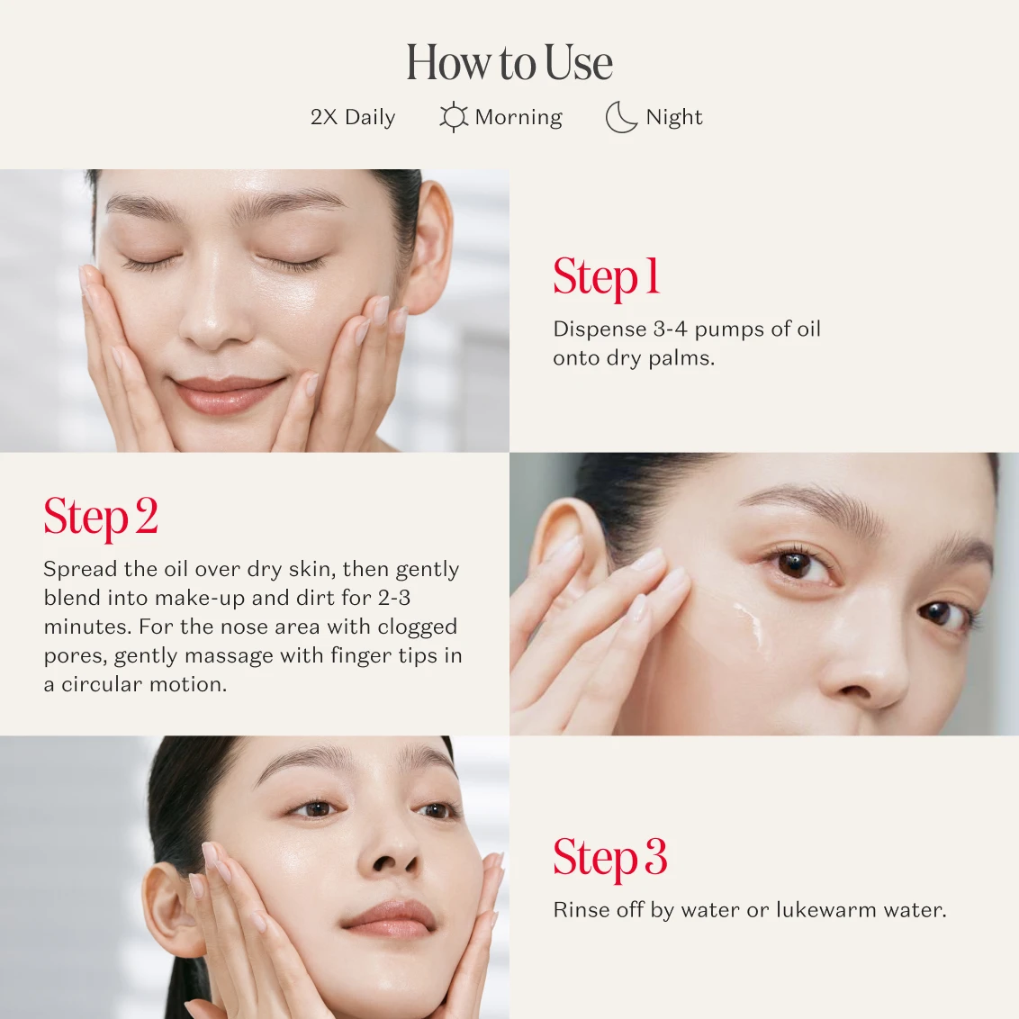 Thoroughly cleanses stubborn makeup, mascara and sunscreen for soft, supple and fresh-looking skin