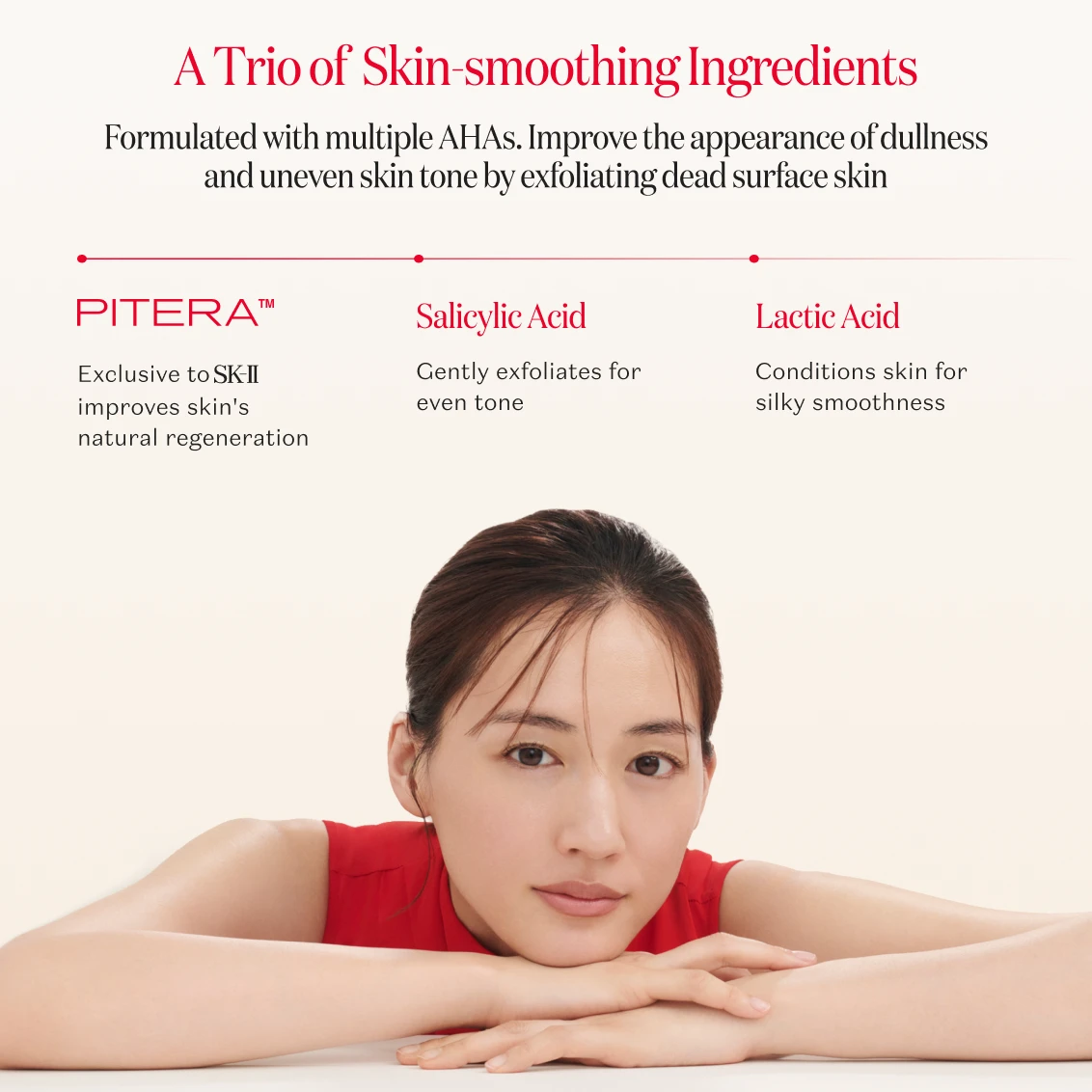 A Trio of Skin-smoothing Ingredients Formulated with multiple AHAs. Improve the appearance of dullness and uneven skin tone by exfoliating dead surface skin