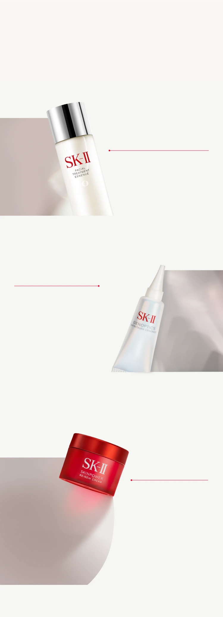 - Refers to SK-II Facial Treatment Essence, GenOptics Infinitaura Essence, and SKINPOWER RENEW Cream
