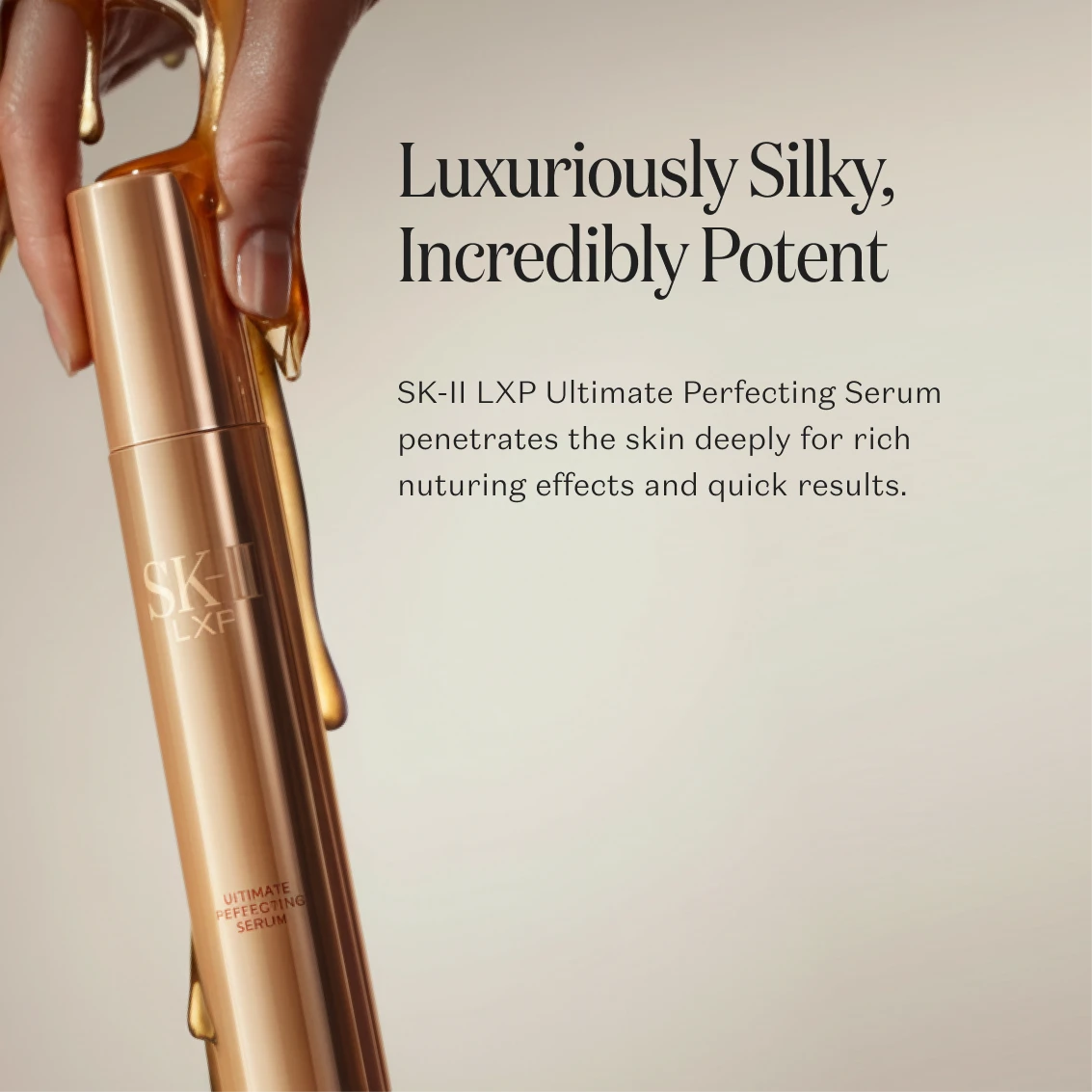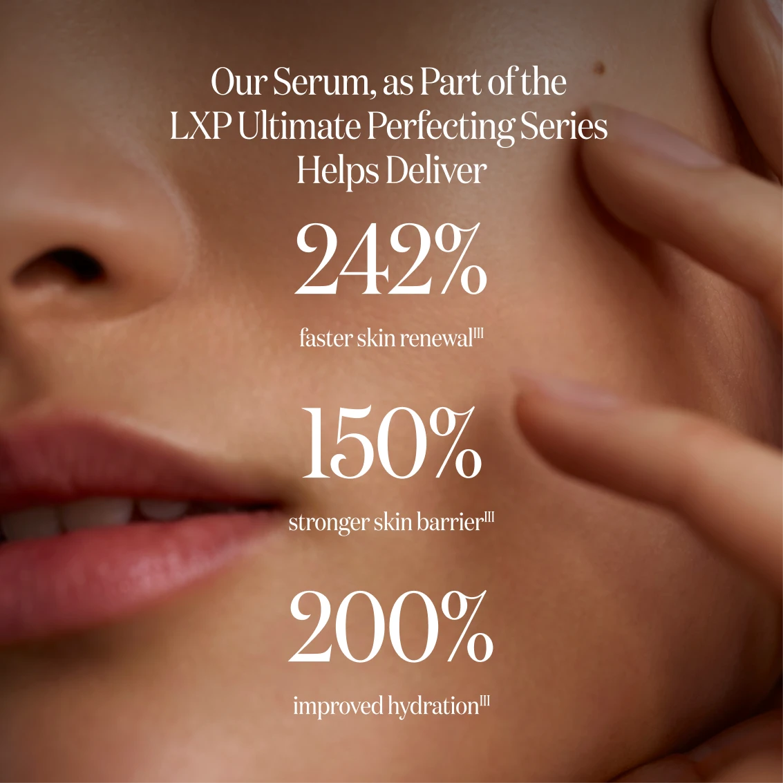 - Based on average test results for skin firmness and hydration conducted by P&G in May 2010, among 30 Japanese females aged 35-55 who used the basic formula of LXP Ultimate Perfecting Serum on forearms for 3 consecutive days. Compared with before use.